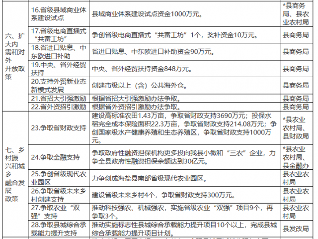 六、擴大內(nèi)需和對外開放政策(由縣商務(wù)局牽頭實施)