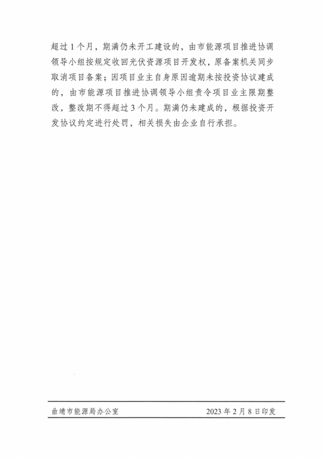 同時,確保曲靖市2022年新開工的50個光伏項目及2023年計劃新開工項目納入省網(wǎng)公司2023年度并網(wǎng)清單,加快取得接入系統(tǒng)批復(fù)。
