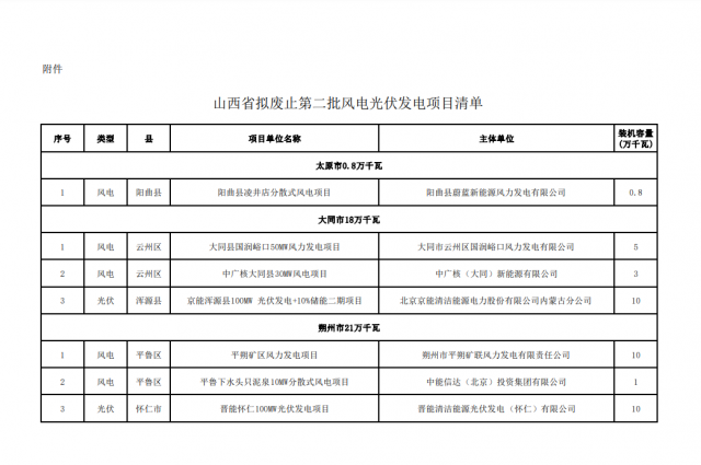 附件:山西省擬廢止第二批風(fēng)電光伏發(fā)電項目清單.pdf