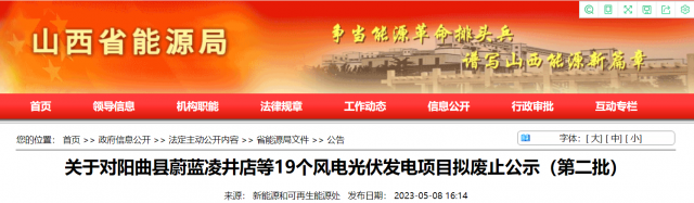 為加快推進新能源“十四五”規(guī)劃建設(shè)進度,實現(xiàn)我省新能源產(chǎn)業(yè)高質(zhì)量發(fā)展,我局組織各市能源局對2021年及之前項目單位投資不積極、確定無法建設(shè)的風(fēng)電光伏發(fā)電項目進行了梳理。相關(guān)地市上報擬廢止項目清單,經(jīng)我局匯總,擬將陽曲縣蔚藍凌井店等19個總規(guī)模100.8萬千瓦風(fēng)電光伏發(fā)電項目予以廢止,現(xiàn)予公示。相關(guān)企業(yè)如有異議,請向相關(guān)市能源局提出書面意見,并在公示期(5個工作日)內(nèi),由市能源局上報省能源局。
