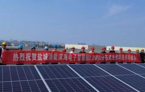 該項目位于濱海縣工業(yè)園區(qū)的電子信息智慧園內(nèi),于今年4月開工建設,利用屋頂面積約3萬平米,總裝機容量2.2兆瓦。項目采用“自發(fā)自用、余電上網(wǎng)”的消納模式,建成后的25年運營期內(nèi),每年可為電網(wǎng)平均提供發(fā)電量237.15萬千瓦時,可有效緩解園區(qū)企業(yè)高峰期用電壓力。與相同發(fā)電量的火電相比,每年可節(jié)約標準煤792噸,減少多種大氣污染物排放,進一步優(yōu)化園區(qū)整體環(huán)境。建設過程中,鹽城清能公司在保證工程質(zhì)量和施工安全的前提下,多措并舉搶時間、提效率、抓進度,如期實現(xiàn)了全容量并網(wǎng)發(fā)電。