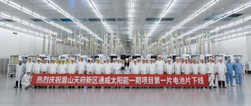 7月5日,通威太陽(yáng)能(電池)彭山基地一期高效晶硅電池項(xiàng)目首片電池片下線。眉山市委副書記、天府新區(qū)眉山黨工委書記趙文嶠等政府相關(guān)領(lǐng)導(dǎo),通威股份董事長(zhǎng)、CEO劉舒琪出席本次儀式,通威太陽(yáng)能總經(jīng)理周華、副總經(jīng)理宋梟等共同見(jiàn)證這一重要時(shí)刻。