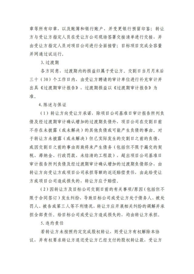 11月30日,湖北能源集團(tuán)股份有限公司連續(xù)發(fā)布三條項(xiàng)目收購(gòu)公告,擬分別收購(gòu)陽(yáng)光新能源298MW漁光互補(bǔ)電站、特變電工100MW風(fēng)電。根據(jù)公告,湖北能源集團(tuán)股份有限公司擬由全資子公司湖北能源集團(tuán)新能源發(fā)展有限公司以股權(quán)對(duì)價(jià)不超過(guò)10452萬(wàn)元收購(gòu)石首源陽(yáng)新能源有限公司100%股權(quán),石首源陽(yáng)公司為石首源陽(yáng)久合垸98MW農(nóng)漁光互補(bǔ)光伏電站項(xiàng)目的項(xiàng)目公司。以股權(quán)對(duì)價(jià)不超過(guò)21,840萬(wàn)元收購(gòu)洪湖卓陽(yáng)新能源有限公司100%股權(quán),承接其全部資產(chǎn)及經(jīng)審計(jì)確認(rèn)的負(fù)債,總投資不超過(guò)105,694萬(wàn)元。洪湖卓陽(yáng)公司為湖卓陽(yáng)新能源峰口200MW漁光互補(bǔ)光伏電站項(xiàng)目的項(xiàng)目公司。