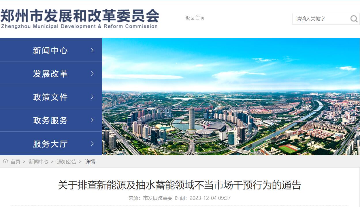 12月4日,河南鄭州發(fā)改委發(fā)布關于排查新能源及抽水蓄能領域不當市場干預行為的通告。一是強制要求配套產業(yè)。今年以來新能源及抽水蓄能領域,區(qū)縣(市)政府或相關部門,是否在相關文件中明確或者變相要求項目必須配套產業(yè)或者引入產業(yè);雖未明文規(guī)定,是否口頭強制要求配套產業(yè),或對于沒有允諾配套產業(yè)的項目和投資主體給予阻礙或明顯歧視政策。