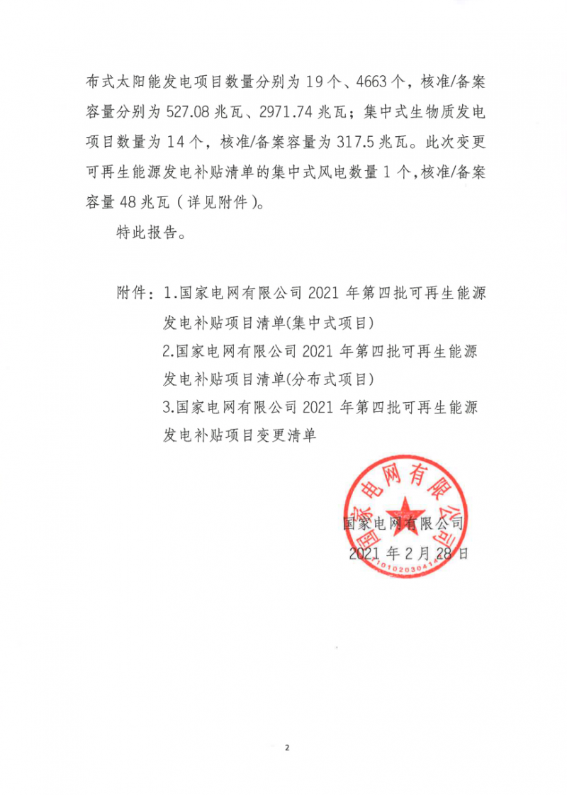 2020年2月28日,國(guó)網(wǎng)公布2021年第四批可再生能源發(fā)電補(bǔ)貼項(xiàng)目清單。
