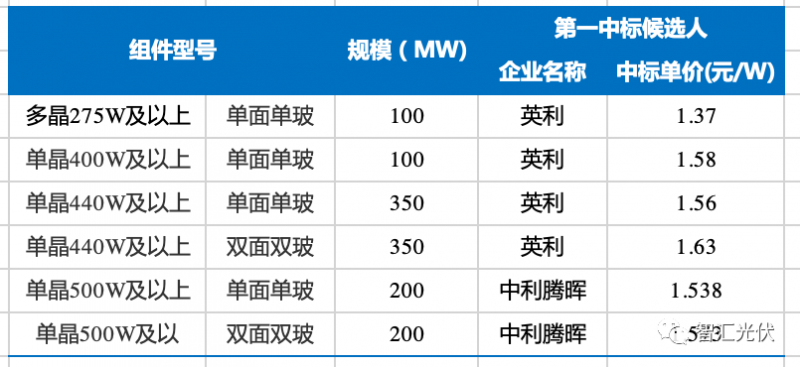 然而,根據(jù)評標(biāo)結(jié)果,實(shí)際多晶組件第一候選人價(jià)格為1.37元/W,單晶組件第一候選人價(jià)格在1.52~1.63元/W之間;因此,實(shí)際中標(biāo)價(jià)格可能遠(yuǎn)低于最高報(bào)價(jià)。
