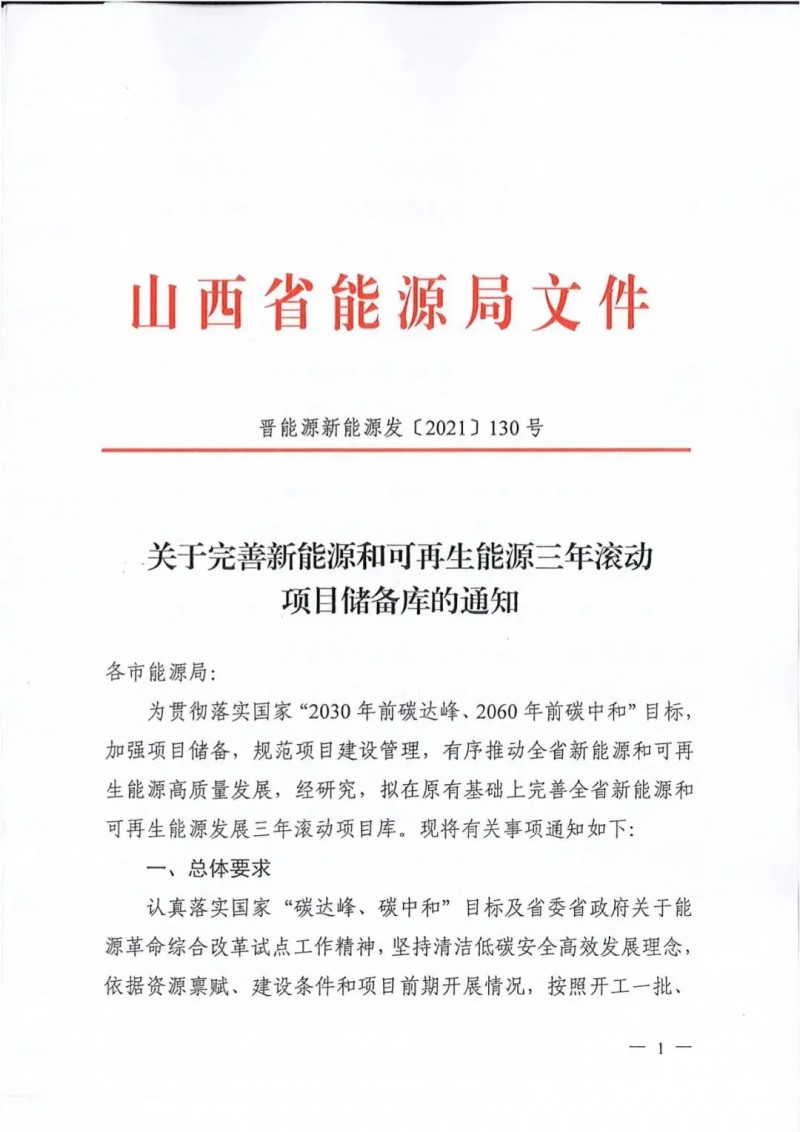 3月26日,山西省能源局印發(fā)《關于完善新能源和可再生能源三年滾動項目儲備庫的通知》,就項目規(guī)劃、管理、建設方面作出相關指示。