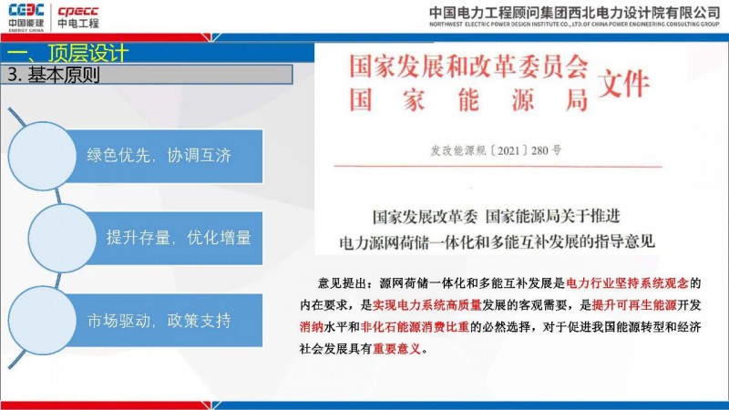 會上,中國能建西北電力設(shè)計院新能源與市政工程分院副設(shè)計總工程師李娜做 碳達峰碳中和背景下“推進一體化”項目開發(fā)與設(shè)計思考 演講,主要介紹了: