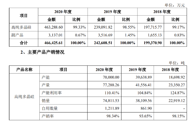 根據(jù)硅業(yè)分會(huì)數(shù)據(jù),2020 年度國(guó)內(nèi)多晶硅產(chǎn)量約為 39.6 萬噸,該公司對(duì)應(yīng)期間的多晶硅產(chǎn)量為 7.73 萬噸,占國(guó)內(nèi)多晶硅產(chǎn)量的 19.52%;2020 年度國(guó)內(nèi)單晶硅片用料產(chǎn)量為 32.6 萬噸,占國(guó)內(nèi)多晶硅產(chǎn)量的 82.4%,該公司在占據(jù)主流的單晶硅片用料的市占率為 22.68%。