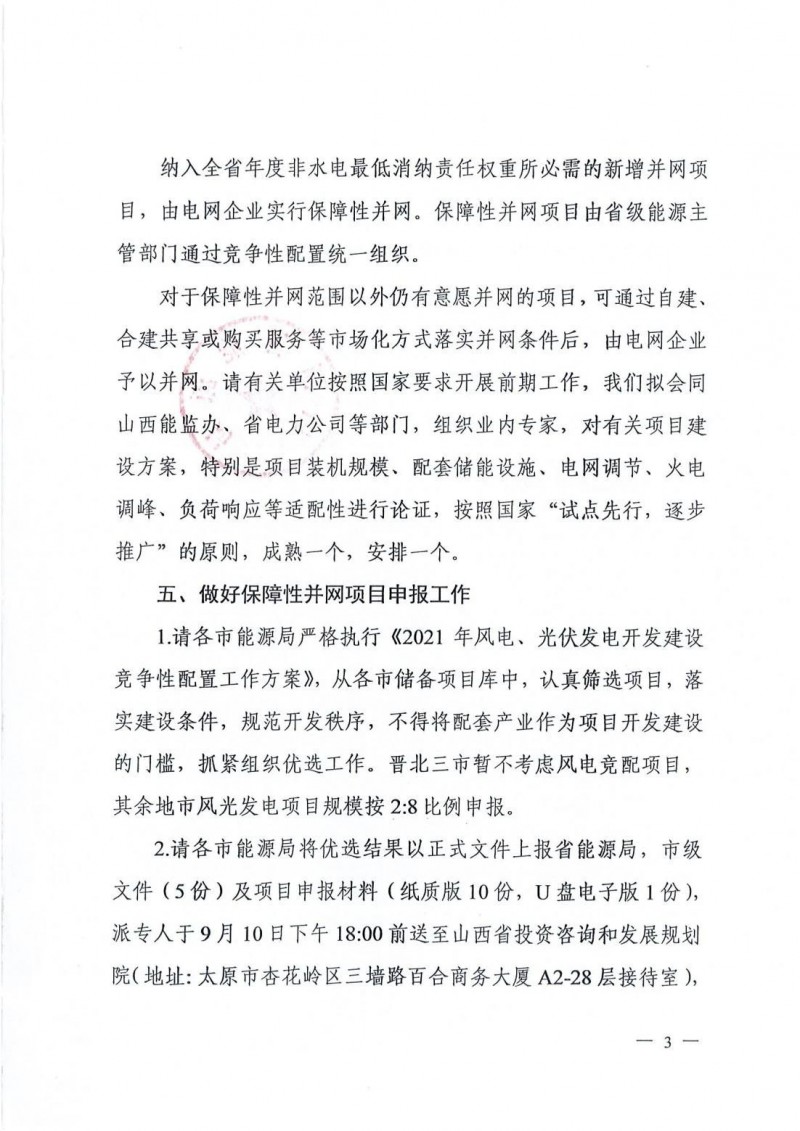 8月26日,山西省能源局印發(fā)《關(guān)于做好2021年風(fēng)電、光伏發(fā)電開(kāi)發(fā)建設(shè)有關(guān)事項(xiàng)的通知》。通知中對(duì)山西省的2021年的光伏、風(fēng)電工作做了規(guī)劃。