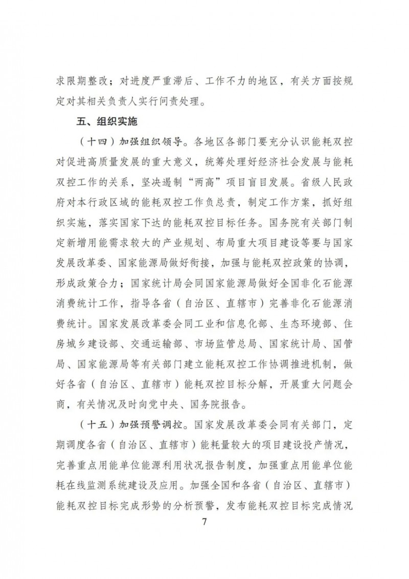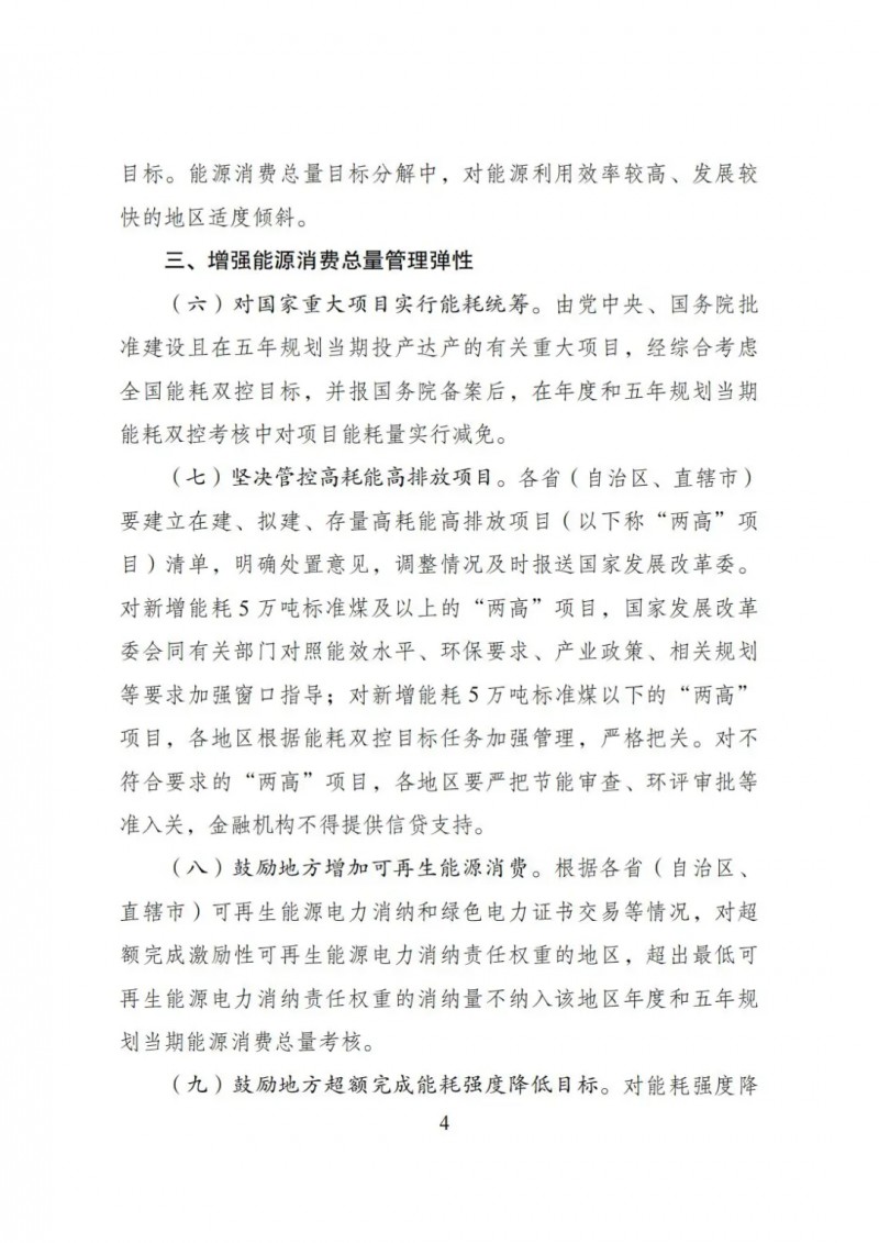 對(duì)新增能耗5萬(wàn)噸標(biāo)準(zhǔn)煤及以上的“兩高”項(xiàng)目,國(guó)家發(fā)展改革委會(huì)同有關(guān)部門對(duì)照能效水平、環(huán)保要求、產(chǎn)業(yè)政策、相關(guān)規(guī)劃等要求加強(qiáng)窗口指導(dǎo);對(duì)新增能耗5萬(wàn)噸標(biāo)準(zhǔn)煤以下的“兩高”項(xiàng)目,各地區(qū)根據(jù)能耗雙控目標(biāo)任務(wù)加強(qiáng)管理,嚴(yán)格把關(guān)。對(duì)不符合要求的“兩高”項(xiàng)目,各地區(qū)要嚴(yán)把節(jié)能審查、環(huán)評(píng)審批等準(zhǔn)入關(guān),金融機(jī)構(gòu)不得提供信貸支持。