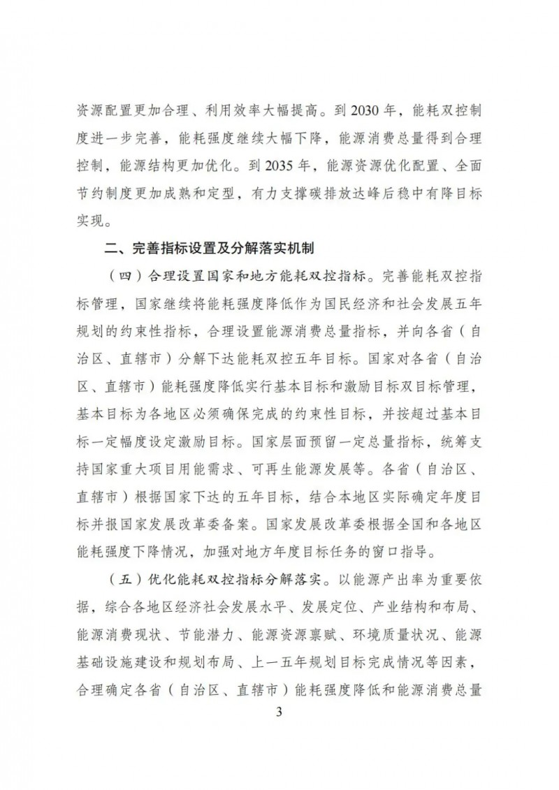到2025年,能耗雙控制度更加健全,能源資源配置更加合理、利用效率大幅提高。到2030年,能耗雙控制度進(jìn)一步完善,能耗強(qiáng)度繼續(xù)大幅下降,能源消費(fèi)總量得到合理控制,能源結(jié)構(gòu)更加優(yōu)化。到2035年,能源資源優(yōu)化配置、全面節(jié)約制度更加成熟和定型,有力支撐碳排放達(dá)峰后穩(wěn)中有降目標(biāo)實(shí)現(xiàn)。