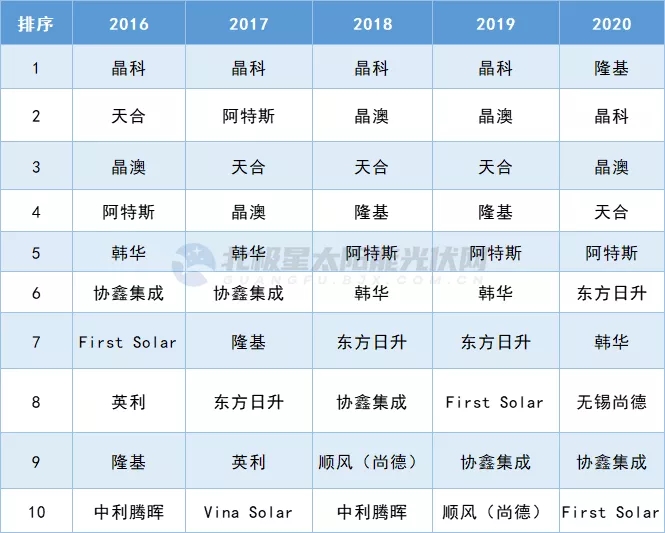 注:上述排行根據(jù)中國光伏行業(yè)協(xié)會(huì)數(shù)據(jù)整理,排名僅供參考