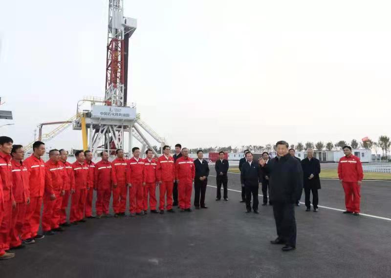 10月21日下午,習(xí)近平總書記來到勝利油田,登上鉆井平臺(tái),察看作業(yè)情況,看望慰問石油工人。今年是勝利油田發(fā)現(xiàn)60周年。習(xí)近平代表黨中央向廣大石油職工致以誠(chéng)摯問候。習(xí)近平指出,石油能源建設(shè)對(duì)我們國(guó)家意義重大,中國(guó)作為制造業(yè)大國(guó),要發(fā)展實(shí)體經(jīng)濟(jì),能源的飯碗必須端在自己手里。希望你們?cè)賱?chuàng)佳績(jī)、再立新功。