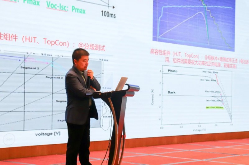 北京德雷射科光電有限公司總經(jīng)理林慧軍,作了《高容性太陽電池組件I-V測試最新研究》的報告,分析了當前高容性太陽電池組件I-V測試的現(xiàn)狀,然后針對光伏產(chǎn)品“容性高,測不準”的行業(yè)痛點,展示了該公司所做的技術(shù)工作及取得的重大成果。