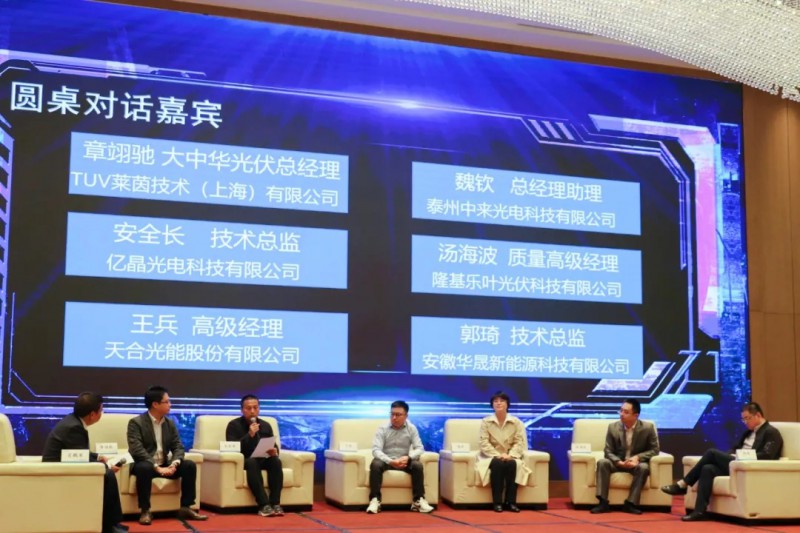 “圓桌對話”環(huán)節(jié)邀請的嘉賓分別是:TUV萊茵技術(shù)(上海)有限公司光伏組件總經(jīng)理章翊馳、億晶光電科技有限公司技術(shù)總監(jiān)安全長、天合光能股份有限公司實驗室高級經(jīng)理王兵、泰州中來光電科技有限公司總經(jīng)理助理魏欽、隆基樂葉光伏科技有限公司高級經(jīng)理湯海波、安徽華晟新能源科技有限公司技術(shù)研發(fā)中心產(chǎn)品開發(fā)總監(jiān)郭琦。各位嘉賓暢所欲言,表達了自己對光伏行業(yè)發(fā)展的看法,并將此次質(zhì)量提升會議的情緒推向了高潮。