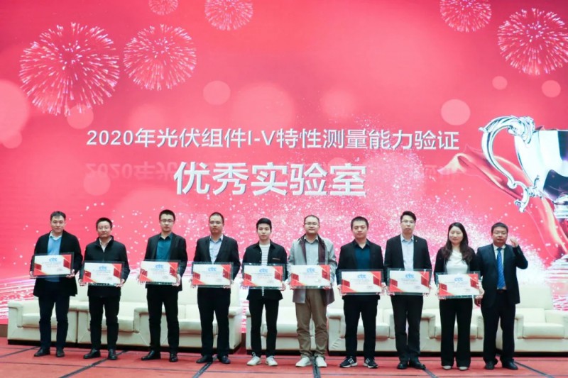 此次會議對常熟阿特斯陽光電力科技有限公司光伏測試中心、常州亞瑪頓股份有限公司中心實驗室、滁州隆基樂葉光伏科技有限公司檢測中心、東方日升新能源股份有限公司實驗室、海寧正泰新能源科技有限公司光伏檢測中心、合肥晶澳太陽能科技有限公司實驗室、環(huán)晟光伏(江蘇)有限公司檢測實驗室、江蘇隆基樂葉光伏科技有限公司檢測中心、江蘇賽拉弗光伏系統(tǒng)有限公司產(chǎn)品檢測中心、晉能清潔能源科技股份公司實驗中心、晶科能源股份有限公司檢測中心(江西上饒)、晶科能源股份有限公司檢測中心(浙江海寧)、上海晶澳太陽能科技有限公司檢測中心、泰州隆基樂葉光伏科技有限公司檢測中心、泰州中來光電科技有限公司檢測中心、通威太陽能(合肥)有限公司光伏實驗中心、無錫尚德太陽能電力有限公司光伏產(chǎn)品檢驗實驗室、張家港協(xié)鑫集成科技有限公司檢測中心、浙江隆基樂葉光伏科技有限公司檢測中心、浙江正泰新能源開發(fā)有限公司光伏檢測中心、中建材浚鑫科技有限公司光伏產(chǎn)品檢測中心、中節(jié)能太陽能科技(鎮(zhèn)江)有限公司,共計22家實驗室,頒發(fā)了“2020年光伏組件I-V特性測量能力驗證 優(yōu)秀實驗室”獎,對東方日升新能源股份有限公司實驗室、海寧正泰新能源科技有限公司光伏檢測中心、合肥晶澳太陽能科技有限公司實驗室、上海晶澳太陽能科技有限公司檢測中心,共計4家實驗室,頒發(fā)了“CTC國檢集團優(yōu)秀合作實驗室”獎。
