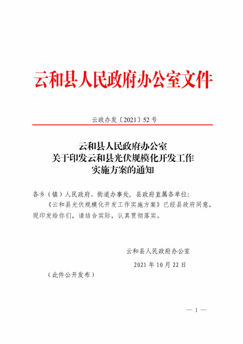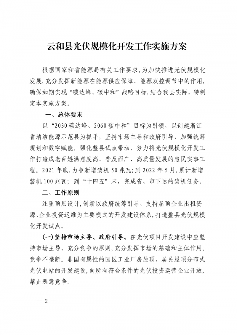 日前,浙江云和縣人民政府辦公室正式印發(fā)印發(fā)云和縣光伏規(guī)?;_發(fā)工作實施方案的通知。