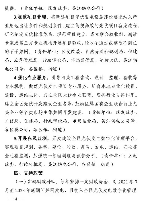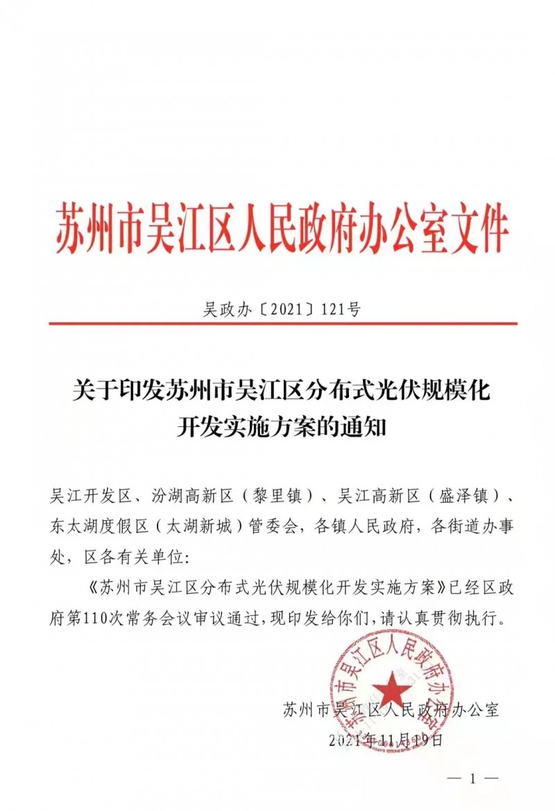 蘇州市吳江區(qū)人民政府發(fā)布印發(fā)吳江區(qū)分布式光伏規(guī)?;_發(fā)實(shí)施方案的通知。