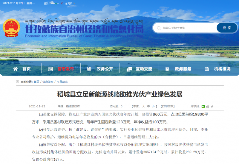 ⑴強(qiáng)化支撐保障。將光伏產(chǎn)業(yè)建設(shè)納入國(guó)家光伏扶貧年度計(jì)劃,總投資860萬元,占地總面積約19800平方米,采用貧困村聯(lián)建方式建設(shè),每年產(chǎn)生固定收益123萬元,年凈收益約103萬元。