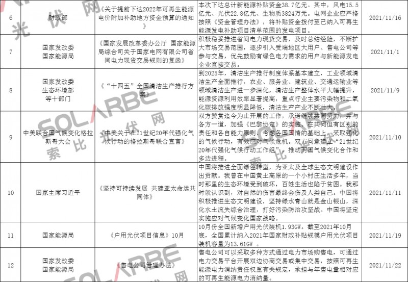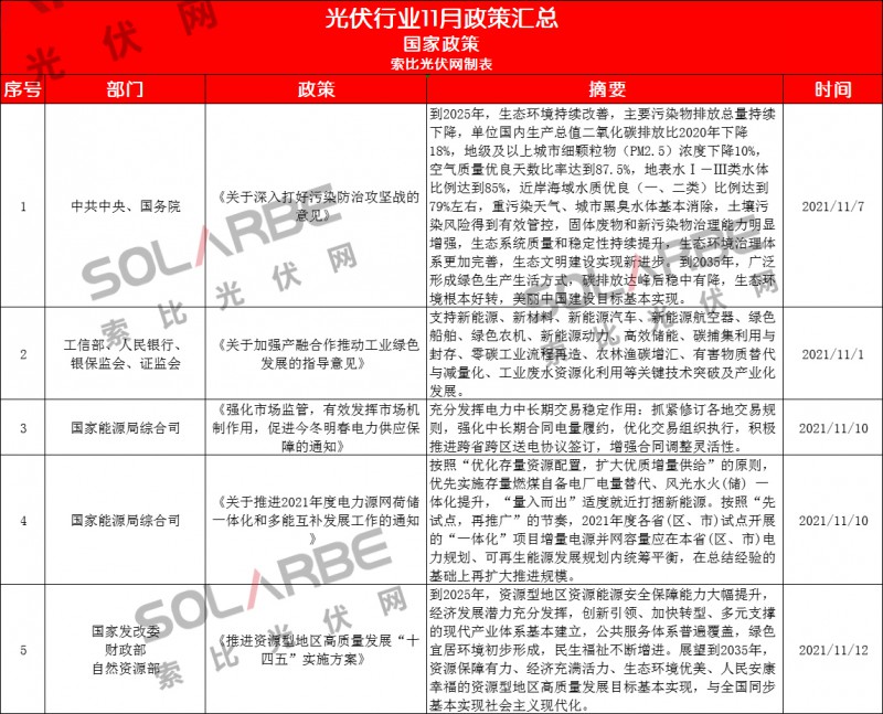 那么,11月份的光伏行業(yè)有哪些政策值得重點關注呢?下面來看索比光伏網(wǎng)的梳理。