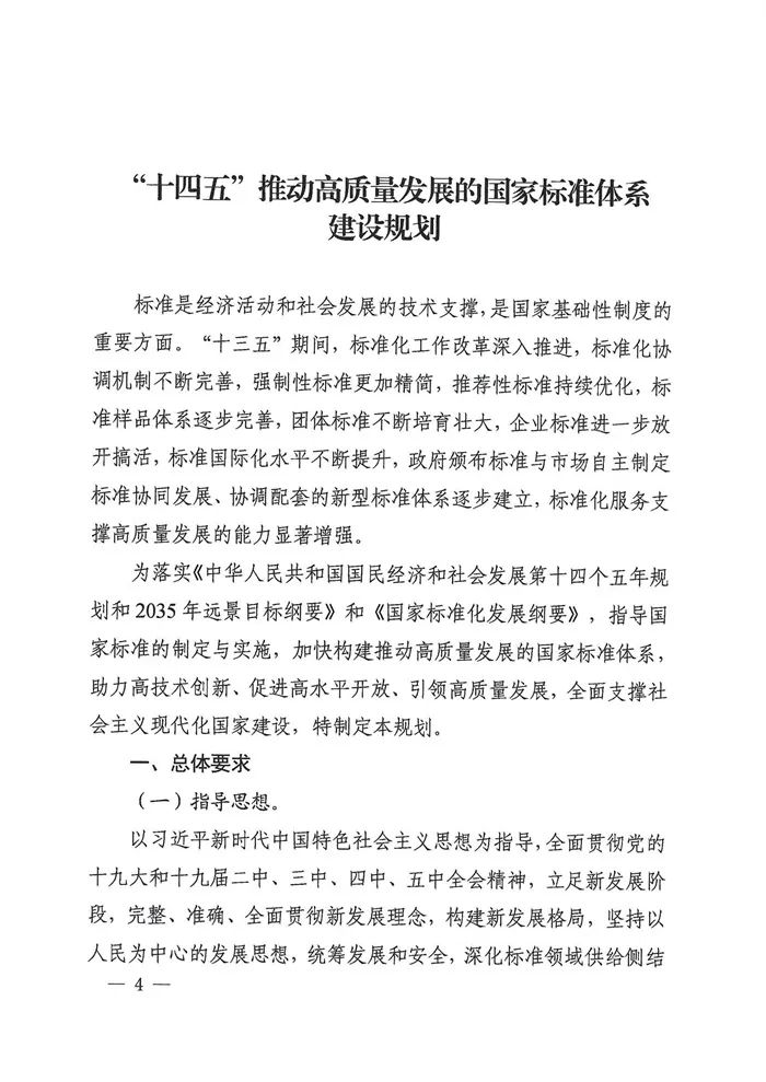 為貫徹落實(shí)《國家標(biāo)準(zhǔn)化發(fā)展綱要》,指導(dǎo)國家標(biāo)準(zhǔn)的制定與實(shí)施,加快構(gòu)建推動高質(zhì)量發(fā)展的國家標(biāo)準(zhǔn)體系,國家標(biāo)準(zhǔn)化管理委員會會同有關(guān)部門組織編制了《“十四五”推動高質(zhì)量發(fā)展的國家標(biāo)準(zhǔn)體系建設(shè)規(guī)劃》,現(xiàn)印發(fā)給你們,請按照執(zhí)行。