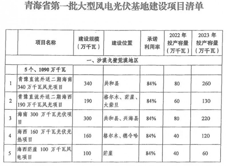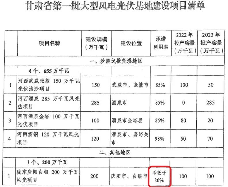 在國家能源局、國家發(fā)改委印發(fā)的《第一批以沙漠、戈壁、荒漠地區(qū)為重點(diǎn)的大型風(fēng)電、光伏基地建設(shè)項(xiàng)目清單的通知》中,青海省僅僅給出了84%的利用率承諾;而甘肅的一個(gè)基地,甚至只敢承諾80%!