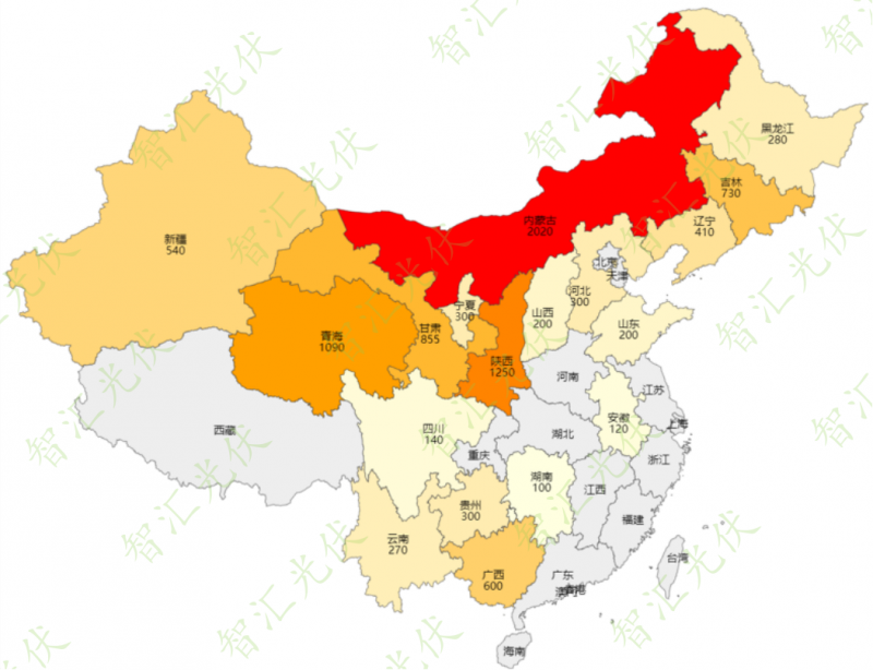 2021年11月24日,國家能源局、國家發(fā)改委印發(fā)的《第一批以沙漠、戈壁、荒漠地區(qū)為重點(diǎn)的大型風(fēng)電、光伏基地建設(shè)項(xiàng)目清單的通知》,涉及19省份,規(guī)??傆?jì)97.05GW。各省具體的規(guī)模如下圖所示。