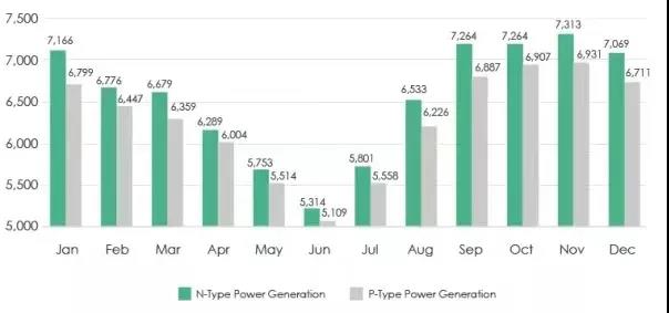得益于N型組件更優(yōu)的溫度系數(shù)和輻照性能,在10月和11月(澳大利亞夏季),N型組件發(fā)電量高于PERC雙面組件5.5%,而在5月和6月(澳大利亞冬季),N型組件發(fā)電量高于P型雙面組件4.3%。每月數(shù)據(jù)顯示發(fā)電量的增長基本穩(wěn)定,而2020年12月澳大利亞雨季延長,雖然組件發(fā)電增益低于正常值,但N型組件的發(fā)電量仍比P型組件高5.3%。