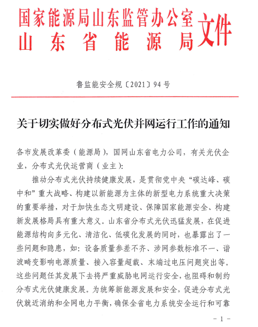 原標(biāo)題:4月1日起執(zhí)行!國家能源局山東監(jiān)管辦公室關(guān)于切實做好分布式光伏并網(wǎng)運行工作的通知