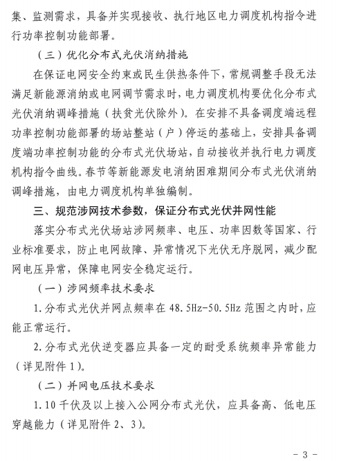 近日,國家能源局山東監(jiān)管辦公室 山東省能源局發(fā)布關(guān)于切實做好分布式光伏并網(wǎng)運行工作的通知,通知指出四點,一、加強接入能力評估,做好分布式光伏接網(wǎng)工作;二、強化安全運行條件,實現(xiàn)分布式光伏精準(zhǔn)監(jiān)控調(diào)度;三、規(guī)范涉網(wǎng)技術(shù)參數(shù),保證分布式光伏并網(wǎng)性能;四、加強協(xié)同聯(lián)動,強化監(jiān)督考核。