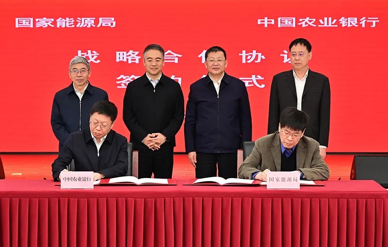 為深入貫徹習(xí)近平總書記“四個革命,一個合作”能源安全新戰(zhàn)略,落實碳達峰碳中和、鄉(xiāng)村振興重大戰(zhàn)略決策部署,2022年1月24日,國家能源局與中國農(nóng)業(yè)銀行簽署戰(zhàn)略合作協(xié)議。國家能源局局長章建華和中國農(nóng)業(yè)銀行董事長谷澍、行長張青松出席簽約儀式。國家能源局副局長林山青主持簽約儀式,國家能源局副局長任志武與中國農(nóng)業(yè)銀行副行長崔勇代表雙方簽署戰(zhàn)略合作協(xié)議。
