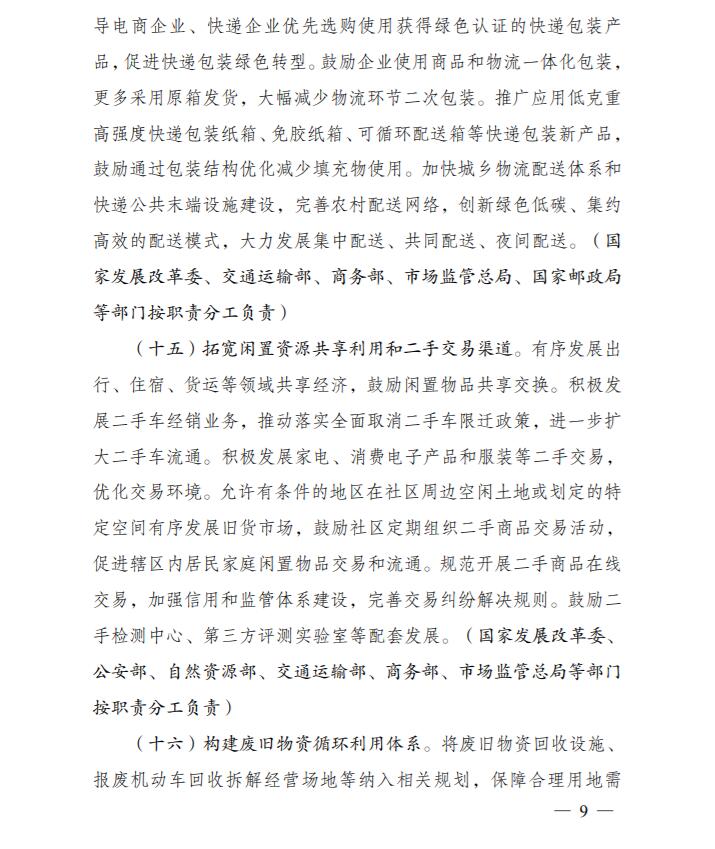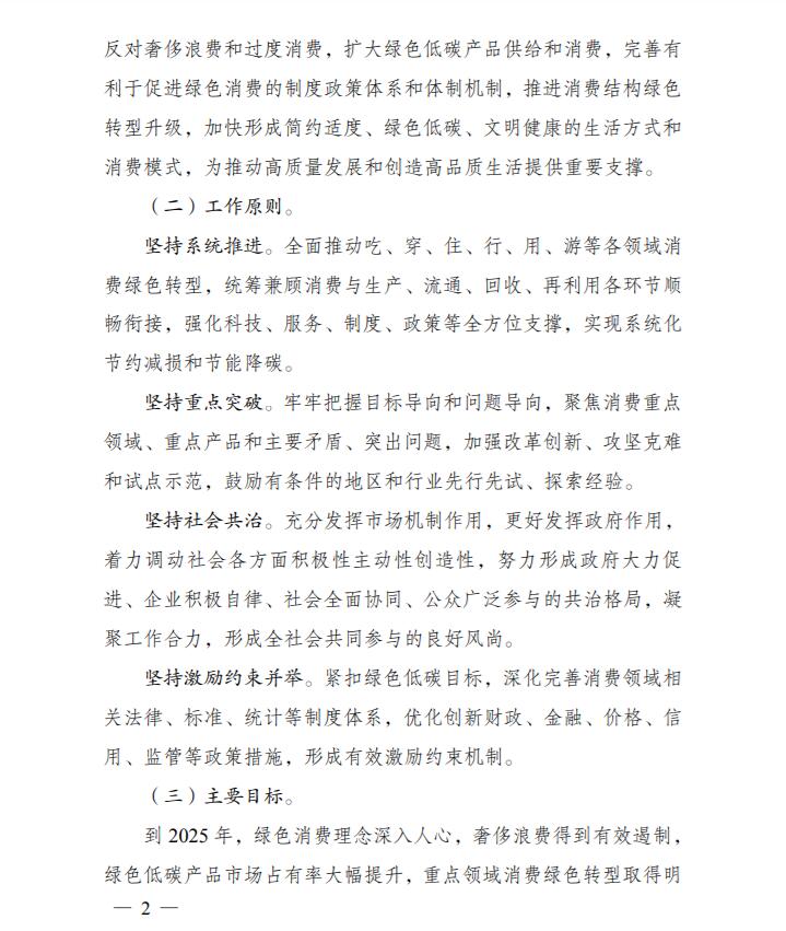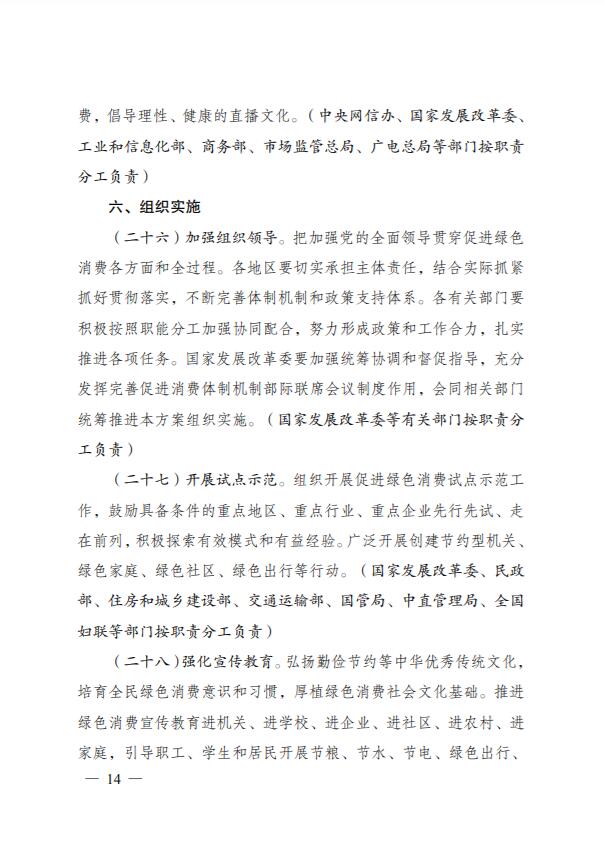 為深入貫徹落實(shí)《中共中央、國(guó)務(wù)院關(guān)于完整準(zhǔn)確全面貫徹新發(fā)展理念做好碳達(dá)峰碳中和工作的意見(jiàn)》和《2030年前碳達(dá)峰行動(dòng)方案》有關(guān)要求,根據(jù)碳達(dá)峰碳中和工作領(lǐng)導(dǎo)小組部署安排,國(guó)家發(fā)展改革委、工業(yè)和信息化部、住房和城鄉(xiāng)建設(shè)部、商務(wù)部、市場(chǎng)監(jiān)管總局、國(guó)管局、中直管理局會(huì)同有關(guān)部門(mén)研究制定了《促進(jìn)綠色消費(fèi)實(shí)施方案》?,F(xiàn)印發(fā)給你們,請(qǐng)結(jié)合實(shí)際,認(rèn)真抓好貫徹落實(shí)。