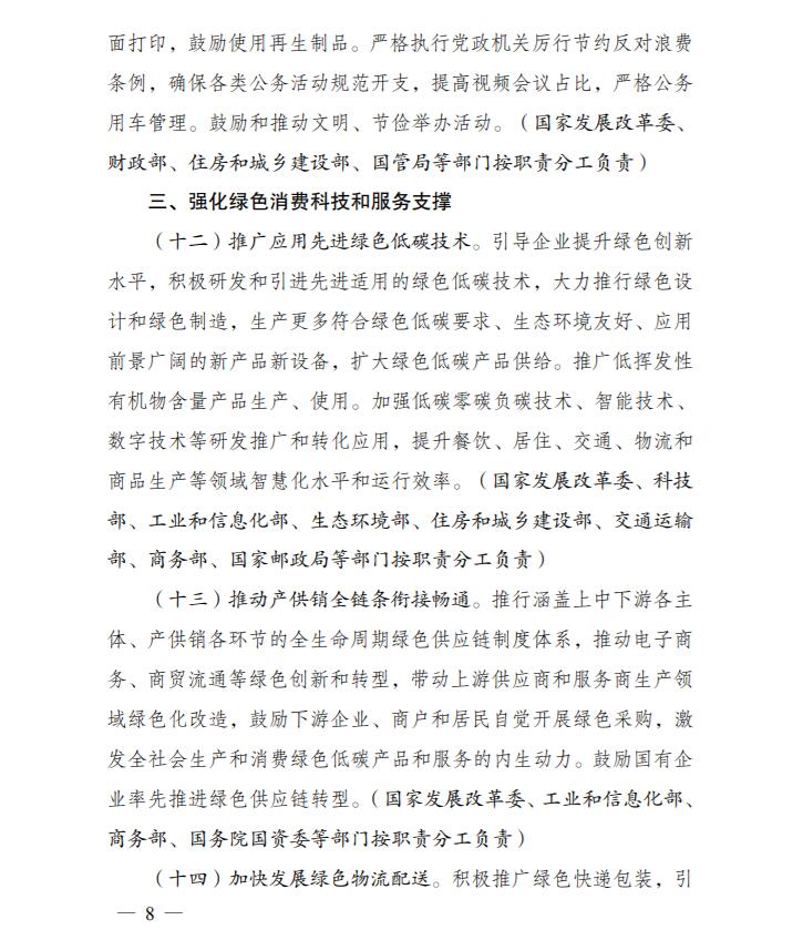國(guó)家發(fā)展改革委等部門(mén)關(guān)于印發(fā)《促進(jìn)綠色消費(fèi)實(shí)施方案》的通知發(fā)改就業(yè)〔2022〕107號(hào)
