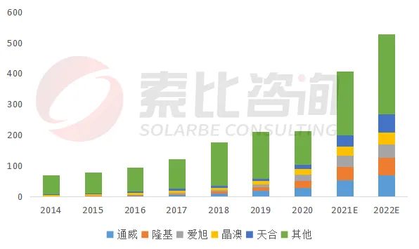 2021年底全球電池片產(chǎn)能達(dá)407GW,預(yù)計2022年底達(dá)540GW,產(chǎn)能過剩。