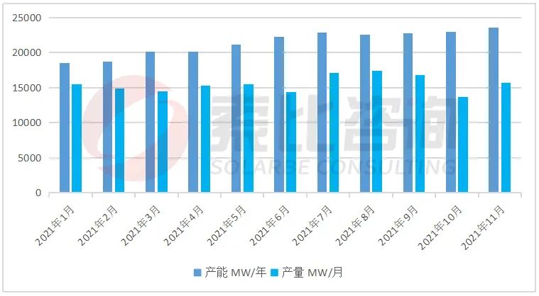 2021年底中國硅料總產(chǎn)能78萬噸,硅料總產(chǎn)量達(dá)48.78萬噸,預(yù)計2022年底硅料總產(chǎn)能達(dá)115萬噸,但2022年H1硅料仍持相對緊缺的狀態(tài),下半年或有緩解。