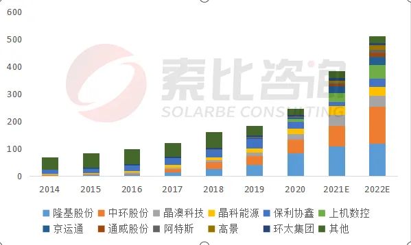 2021年底全球硅片產(chǎn)能366GW,索比咨詢預(yù)計2022年底硅片產(chǎn)能將達(dá)515GW,硅片產(chǎn)能供過于求。伴隨高景太陽能、雙良節(jié)能等新玩家重資入場,新老玩家競爭將加劇中小企業(yè)淘汰,雙寡頭局面或更改。