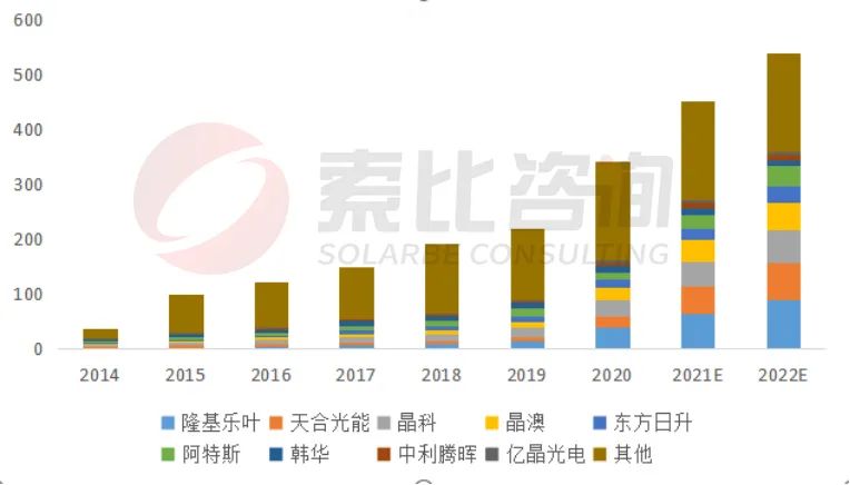 2022年將是產(chǎn)業(yè)鏈供需重新平衡的一年。曹宇表示,索比咨詢預(yù)計2022年全球硅料產(chǎn)能在300GW、單晶硅片產(chǎn)能在430GW、電池片產(chǎn)能360GW、組件產(chǎn)能390GW,硅片/電池/組件產(chǎn)能相對過剩,進(jìn)入替代期。