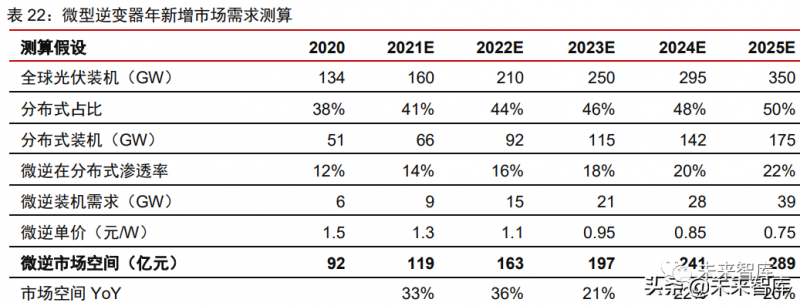 微逆市場(chǎng)有望迎來(lái)高增長(zhǎng),未來(lái) 5 年市場(chǎng)空間 CAGR 或超 25%,優(yōu)質(zhì)廠商有望持續(xù) 高成長(zhǎng)。在全球屋頂分布式光伏市場(chǎng)裝機(jī)占比提升,以及安全性要求持續(xù)提升的推動(dòng)下, 隨著微型逆變器產(chǎn)品性?xún)r(jià)比持續(xù)優(yōu)化,滲透率有望迎來(lái)快速提升??紤]到微逆價(jià)格和成本 有望持續(xù)下降,我們預(yù)計(jì) 2025 年微型逆變器市場(chǎng)空間或達(dá) 290 億元,對(duì)應(yīng) CAGR 超 25%, 具備產(chǎn)品性能和成本優(yōu)勢(shì)的國(guó)內(nèi)逆變器龍頭企業(yè)具備強(qiáng)勁的市場(chǎng)競(jìng)爭(zhēng)能力和巨大的全球 替代空間。