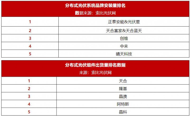 從索比光伏網(wǎng)了解的情況看,越來越多開發(fā)企業(yè)、安裝商傾向于選擇一線大品牌產(chǎn)品,或者與背靠大型制造企業(yè)的一線品牌合作,成為他們的區(qū)域代理商,馬太效應(yīng)愈加明顯。其中,在系統(tǒng)品牌方面,正泰安能、天合富家牢牢把持前兩把交椅,創(chuàng)維、中來、晴天也成功躋身分布式安裝量前五。在組件品牌方面,天合、隆基兩大品牌依然是最強王者,晶澳、阿特斯、晶科也保持了自己的龍頭地位。