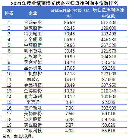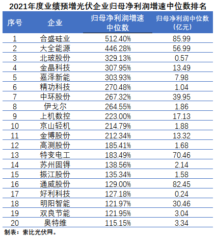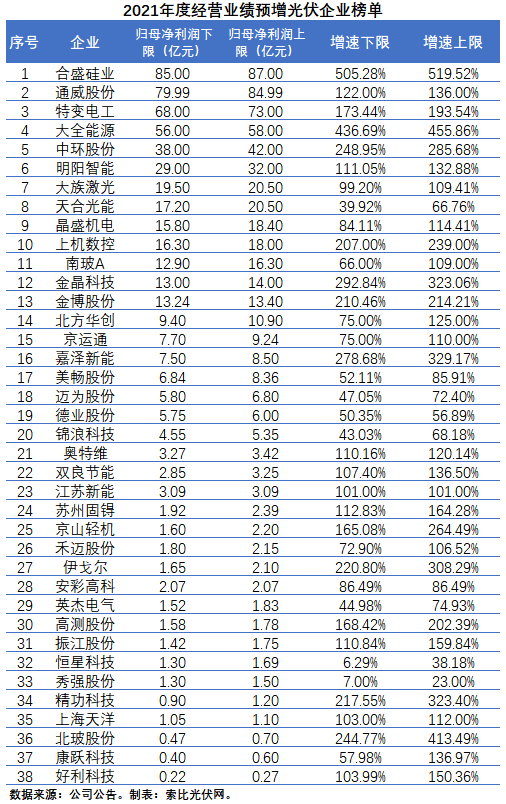 除了這38家企業(yè)以外,其實(shí)還有相當(dāng)多的光伏企業(yè)在2021年經(jīng)營業(yè)績亦呈增長態(tài)勢,只是它們沒有達(dá)到業(yè)績預(yù)告的披露標(biāo)準(zhǔn)而已。