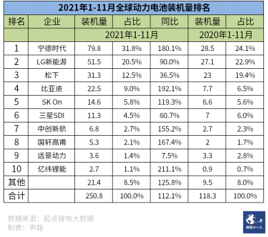 圖3:2021年1-11月全球動力電池裝機量排名