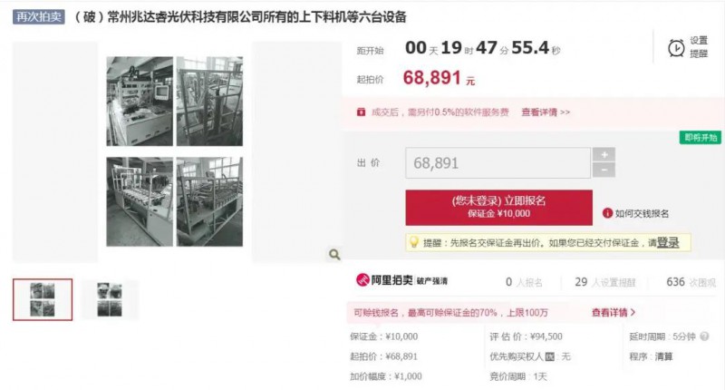 近日,一批土地使用權、光伏電站機器設備及金剛線多晶截斷機、上下料機、太陽能晶片計數(shù)儀等光伏設備即將在阿里司法拍賣平臺進行拍賣。