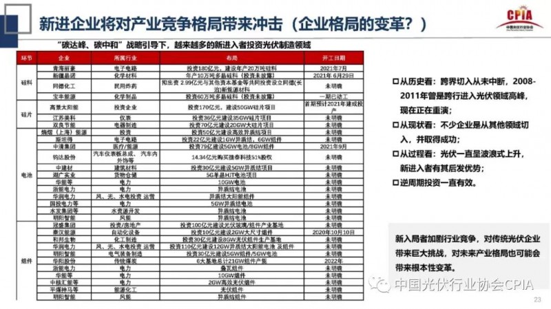 而新入局者無疑將加劇行業(yè)競爭,給傳統(tǒng)光伏企業(yè)帶來巨大挑戰(zhàn),也可能會給未來的產(chǎn)業(yè)格局帶來根本性變革。
