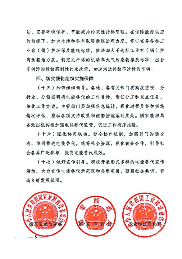 日前,國家發(fā)改委等十部委聯(lián)合發(fā)布《關于進一步推進電能替代的指導意見》。
