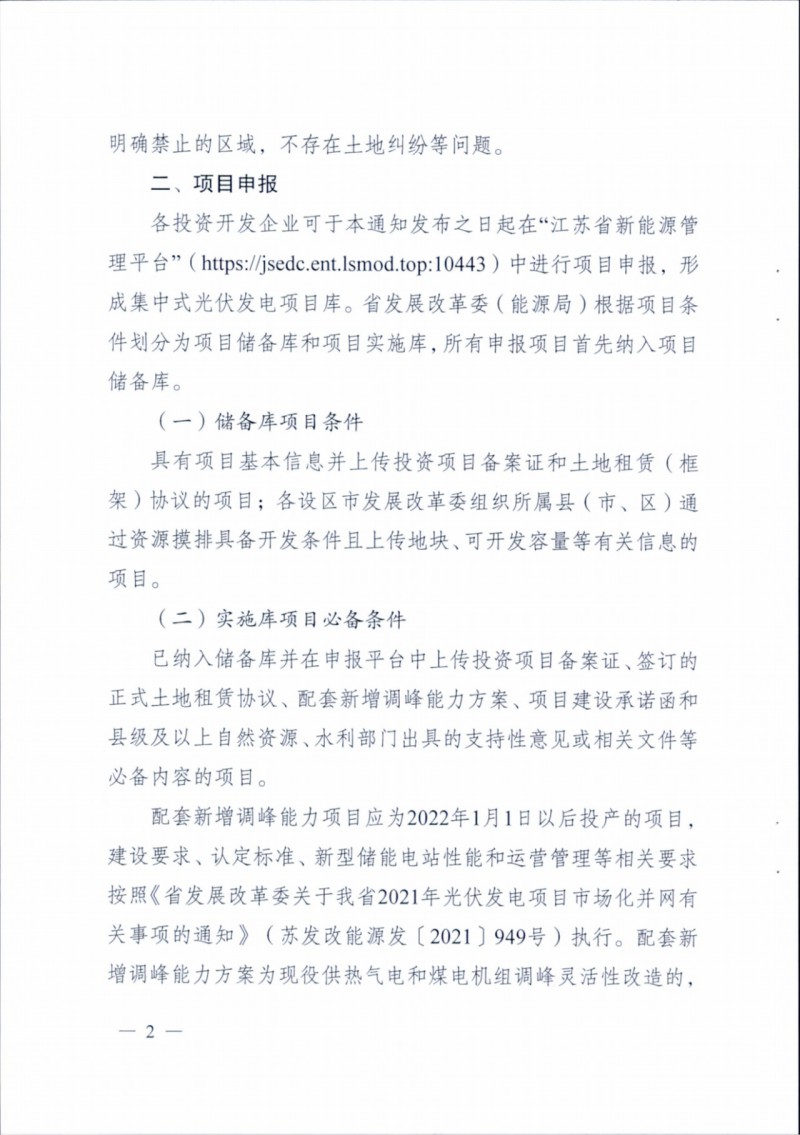 需要注意的是,配套新增調(diào)峰能力應(yīng)為2022年1月1日后投產(chǎn)的項目,各項相關(guān)要求按照2021年下發(fā)的《關(guān)于我省2021年光伏發(fā)電項目市場化并網(wǎng)有關(guān)事項的通知》要求為準(zhǔn),即江蘇省長江以南地區(qū)新建光伏發(fā)電項目原則上按照功率8%及以上比例配建調(diào)峰能力(時長2小時,下同),長江以北地區(qū)原則上按照功率10%及以上比例配建調(diào)峰能力。