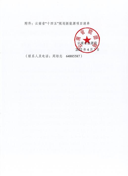 4月8日,云南省能源局關于加快推進“十四五”規(guī)劃新能源項目配套接網(wǎng)工程有關工作的通知。為確保順利完成全省“十四五”新能源規(guī)劃建設目標,切云南省發(fā)改委要求實做好新能源項目建設與配套接網(wǎng)工程同步規(guī)劃、同步建設、同步投產工作,實現(xiàn)新能源項目按期并網(wǎng)消納,保障全省能源供應安全。