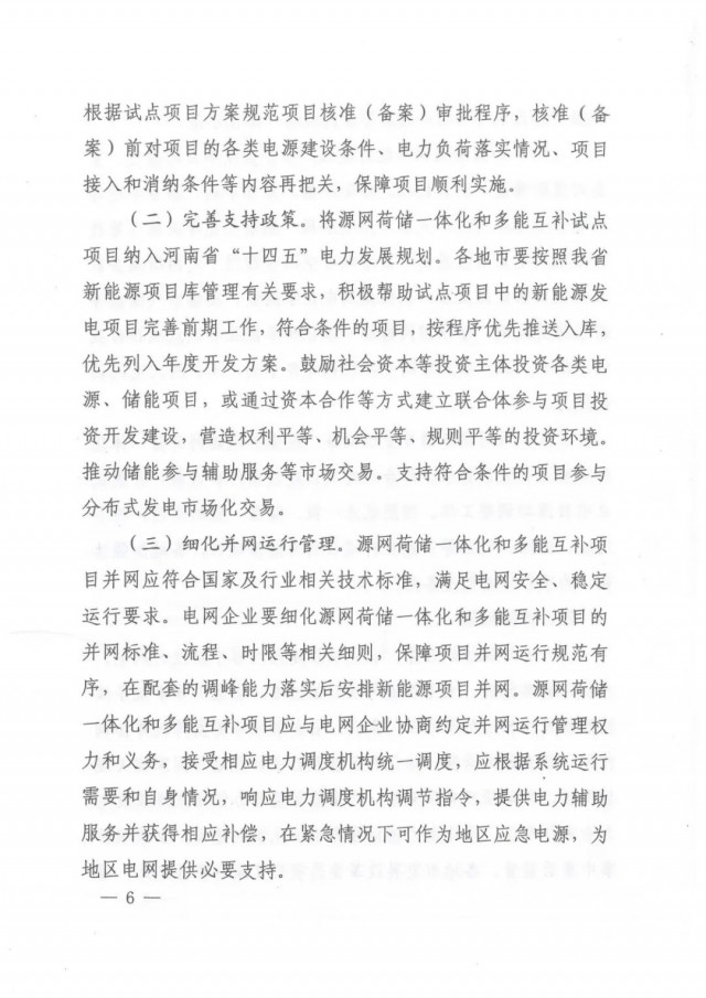 要重點(diǎn)推進(jìn)多能互補(bǔ)發(fā)展示范,最大化發(fā)展利用新能源電力,實(shí)現(xiàn)風(fēng)、光、火、儲(chǔ)靈活互補(bǔ)一體化發(fā)展。重點(diǎn)在濮陽(yáng)、商丘、信陽(yáng)、焦作、新鄉(xiāng)等地開(kāi)展市級(jí)多能互補(bǔ)項(xiàng)目示范,在平頂山魯山開(kāi)展縣級(jí)多能互補(bǔ)項(xiàng)目示范,到2025年,建成一批年發(fā)電量不低于8億千瓦時(shí)的市(縣)多能互補(bǔ)發(fā)展示范項(xiàng)目。