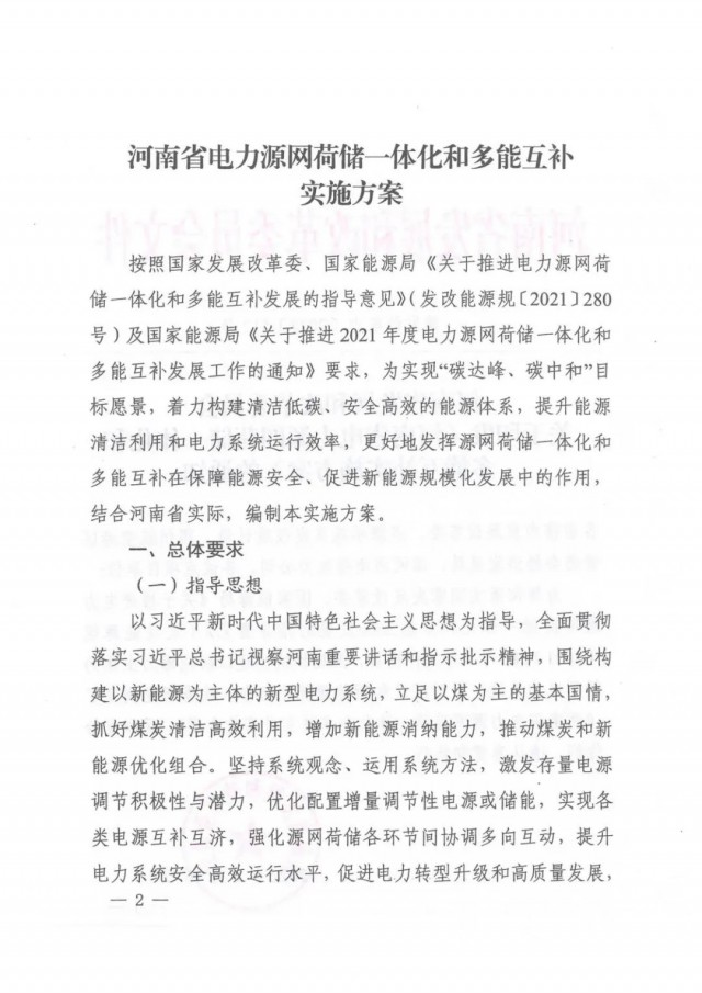 6月16日,河南省發(fā)改委印發(fā)《河南省電力源網(wǎng)荷儲(chǔ)一體化和多能互補(bǔ)實(shí)施方案》的通知,文件指出,要按照綠色優(yōu)先、協(xié)調(diào)互濟(jì),試點(diǎn)先行、突出重點(diǎn),就地就近、安全靈活,市場(chǎng)驅(qū)動(dòng)、政策支持的基本原則,重點(diǎn)在新能源消納壓力大、資源條件較好和電力供應(yīng)緊張的地區(qū)開(kāi)展項(xiàng)目試點(diǎn),按照“成熟一批、推動(dòng)一批"的模式分步推廣實(shí)施。到2025年,建成一批高比例消納新能源的多能互補(bǔ)和源網(wǎng)荷儲(chǔ)一體化示范項(xiàng)目。
