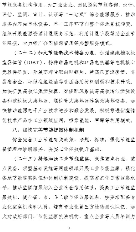計劃提出,到2025年,重點工業(yè)行業(yè)能效全面提升,數(shù)據(jù)中心等重點領(lǐng)域能效明顯提升,綠色低碳能源利用比例顯著提高,節(jié)能提效工藝技術(shù)裝備廣泛應(yīng)用,標(biāo)準(zhǔn)、服務(wù)和監(jiān)管體系逐步完善,鋼鐵、石化化工、有色金屬、建材等行業(yè)重點產(chǎn)品能效達(dá)到國際先進(jìn)水平,規(guī)模以上工業(yè)單位增加值能耗比2020年下降13.5%。能盡其用、效率至上成為市場主體和公眾的共同理念和普遍要求,節(jié)能提效進(jìn)一步成為綠色低碳的“第一能源”和降耗減碳的首要舉措。